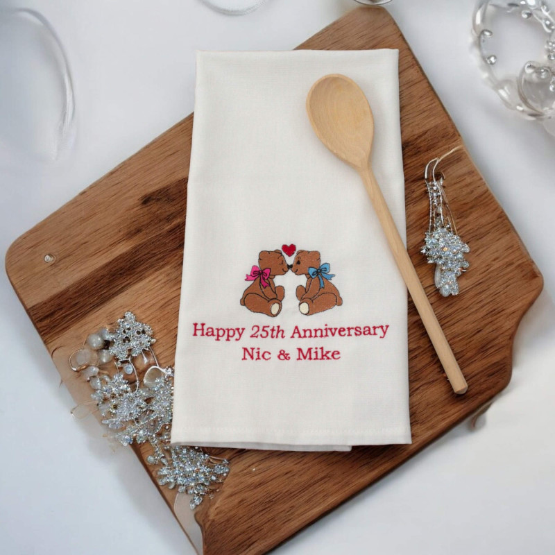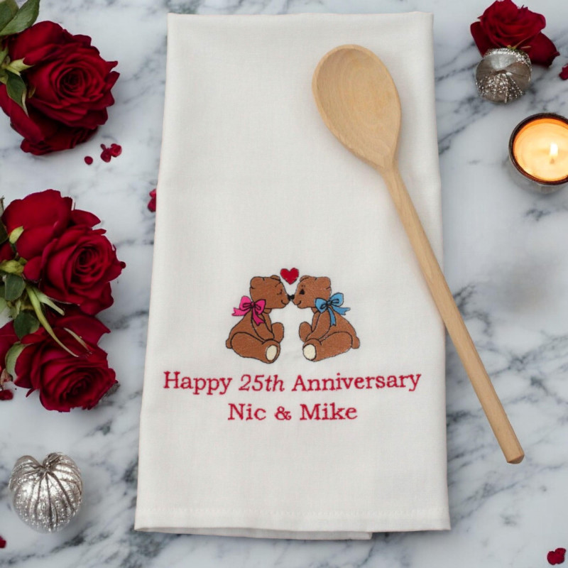 Anniversary Tea Towel Personalised Tea Towel Kissing Bears
