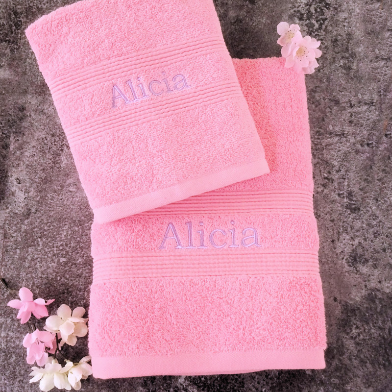 Personalised bath towels a unique gift in pink and blue. Popular for wedding or anniversary gifts a..