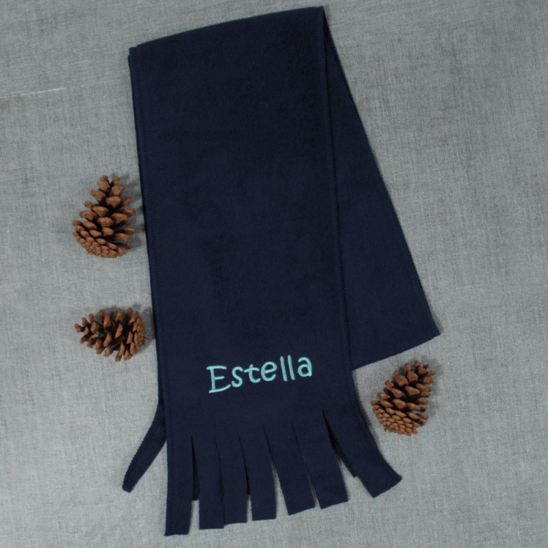 Optional to have this scarf personalised with a name or initials of your choice added to one end. Custom embroidered in your choice of font style and thread colour.