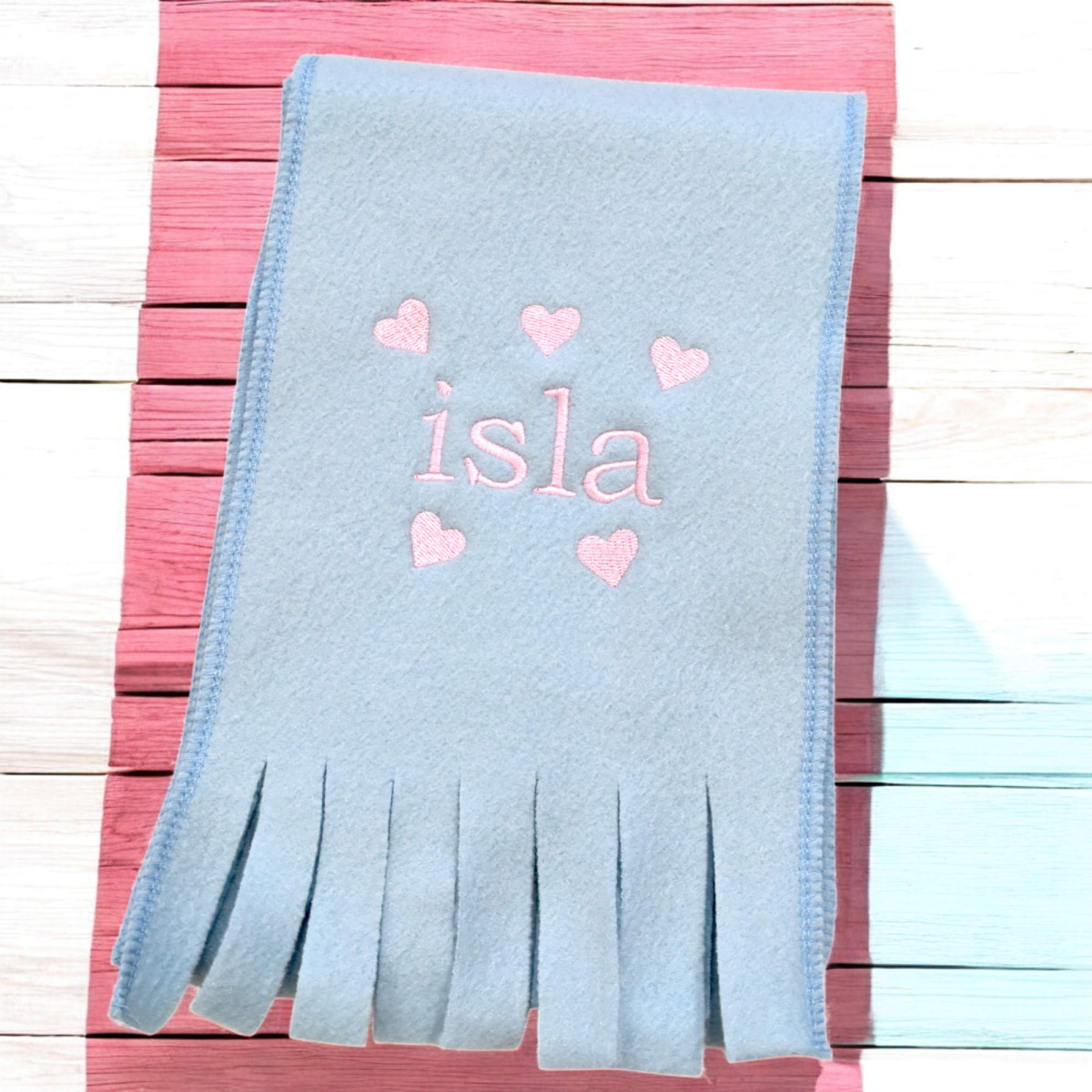 Childrens Personalised Hearts Scarf Kids Scarves Choice of Colour