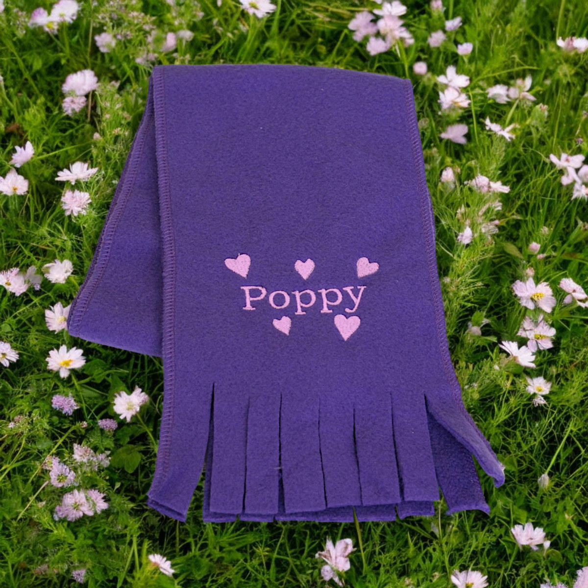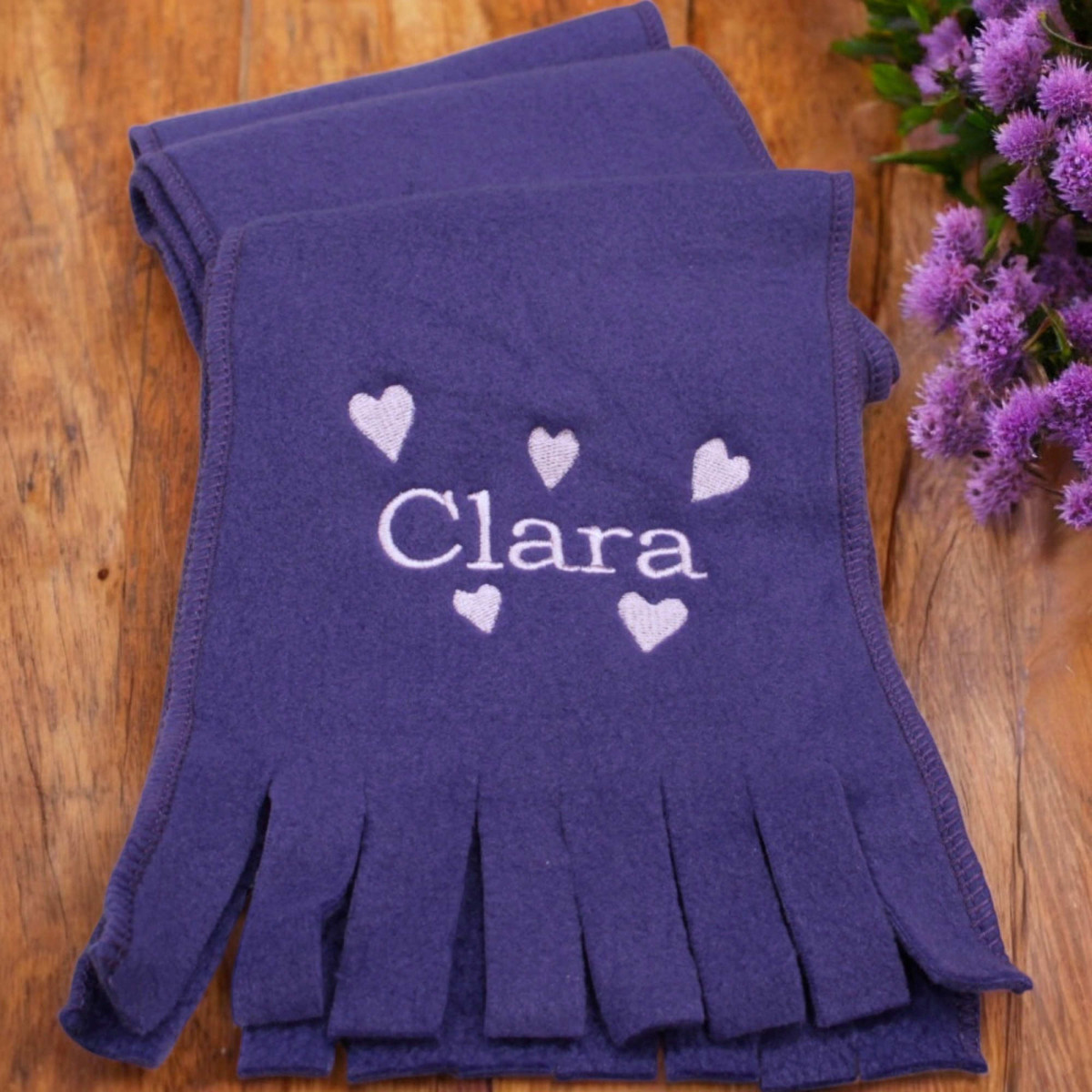 Warm polar fleece scarf with tassel ends and stitched sides. Nice length for wrapping up in cold weather. Cosy and Comfortable fit. Kids Size L150 x W15 cm. Choose your scarf colour and then choose the thread colour for embroidery.