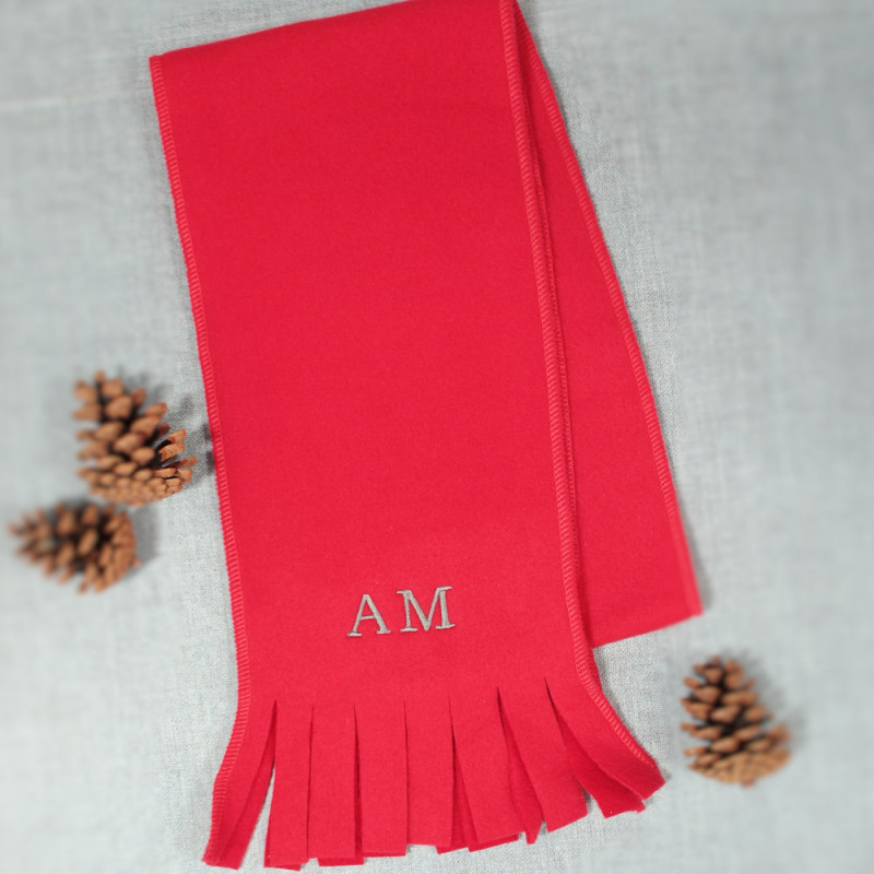 Optional to have this scarf personalised with a name or initials of your choice added to one end. Custom embroidered in your choice of font style and thread colour.