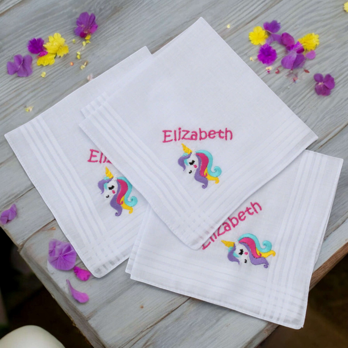 Childs Personalised Handkerchiefs Unicorn Set of 3 Hankies
