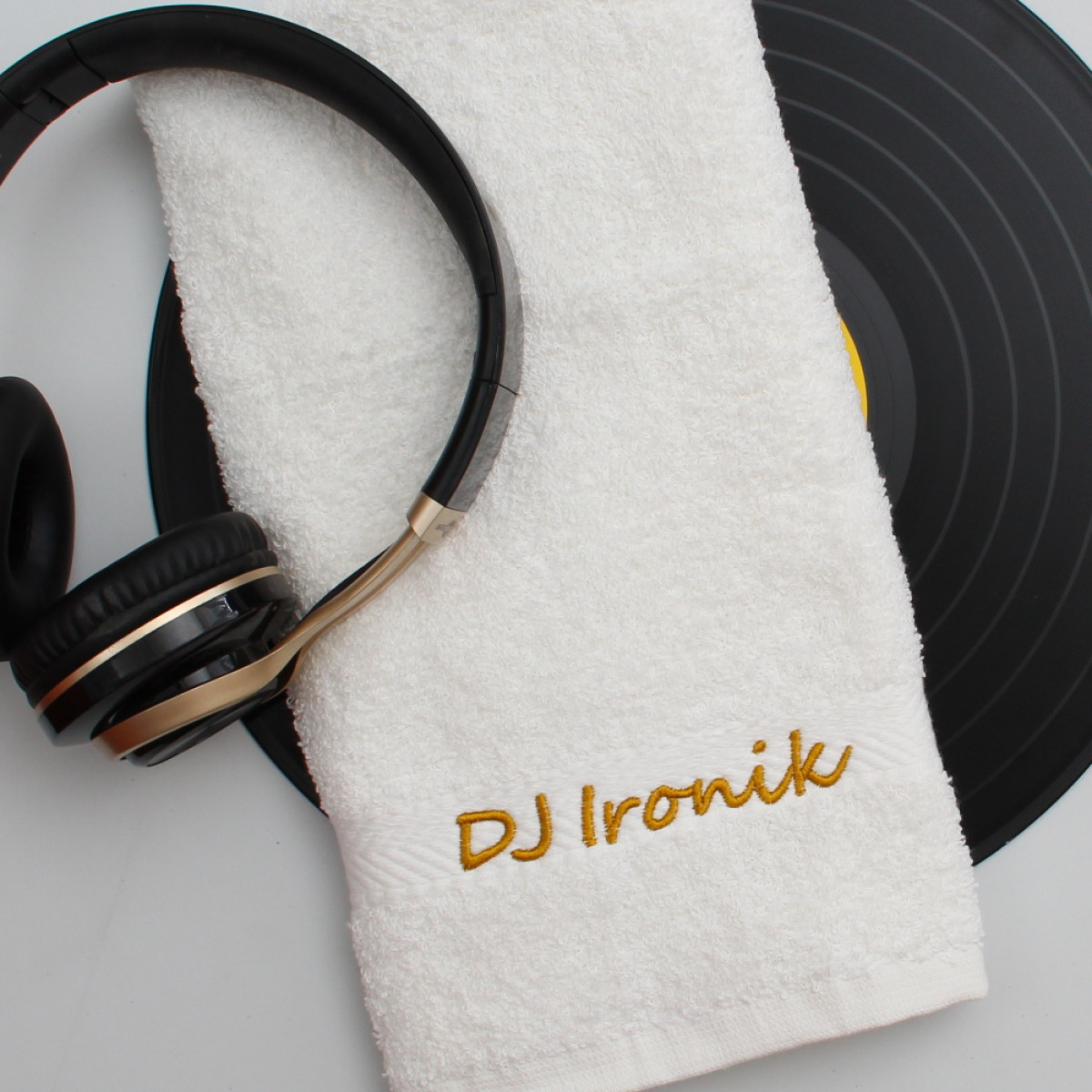 Tags: dj, brand, branding, personalised, decks, music, sweat, printed, gym towel