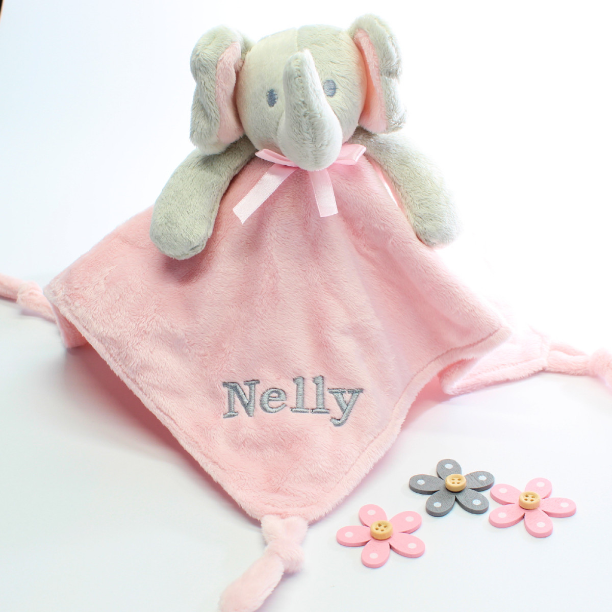 Elephant Baby Comforter Personalised Baby Girl Taggy Blankie