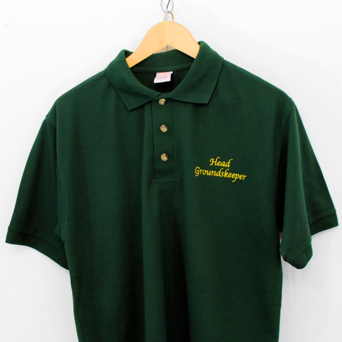 Embroidered polo shirt with any name or text of your choice such as a name, initials, company name or a brief moto.