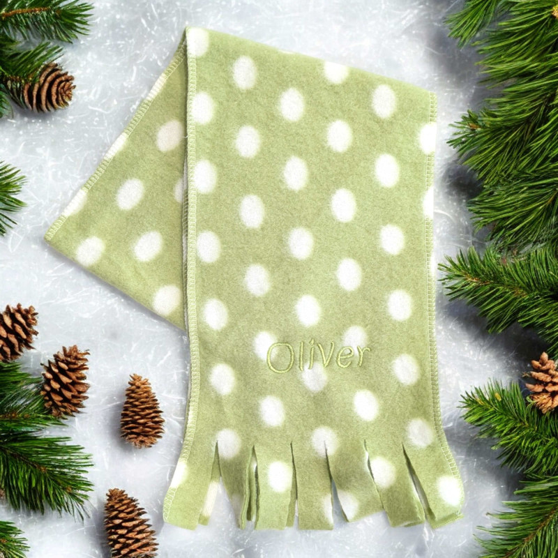 Kids Personalised Scarf Childrens Green Polka Dot Scarf