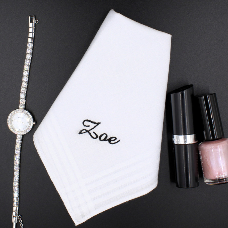 Ladies personalised white cotton handkerchief perfect accessory for your handbag.