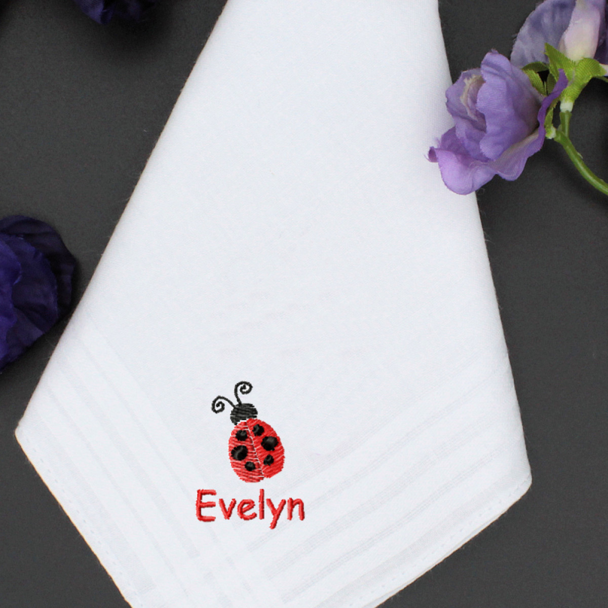 Tags: ladybug ladybirds girls boys hankies handkerchiefs hanky handkerchief childrens ladies personalised childs kids bug lady bird