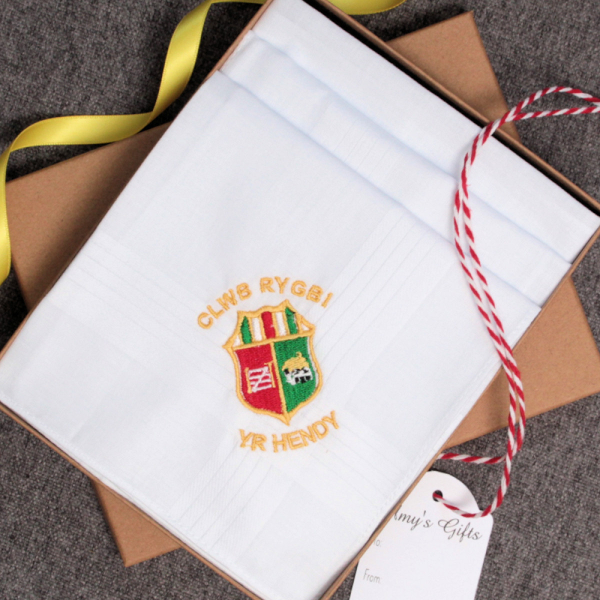 Gift boxed set of 3 cotton handkerchiefs including logo design service to add a customised logo of your choice to be embroidered onto each hanky. Simply email your design to us for evaluation.
