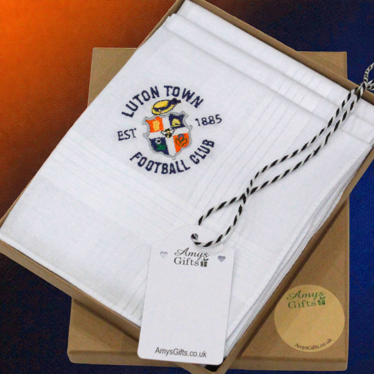 Tags: luton town gift, football club handkerchief, custom FC handkerchief, personalised football gift, football team gift, custom hankies, Luton Town FC, football fan present, custom sports gift, handkerchief set, Luton fan gift, men’s football gift, Hatters, Hatter