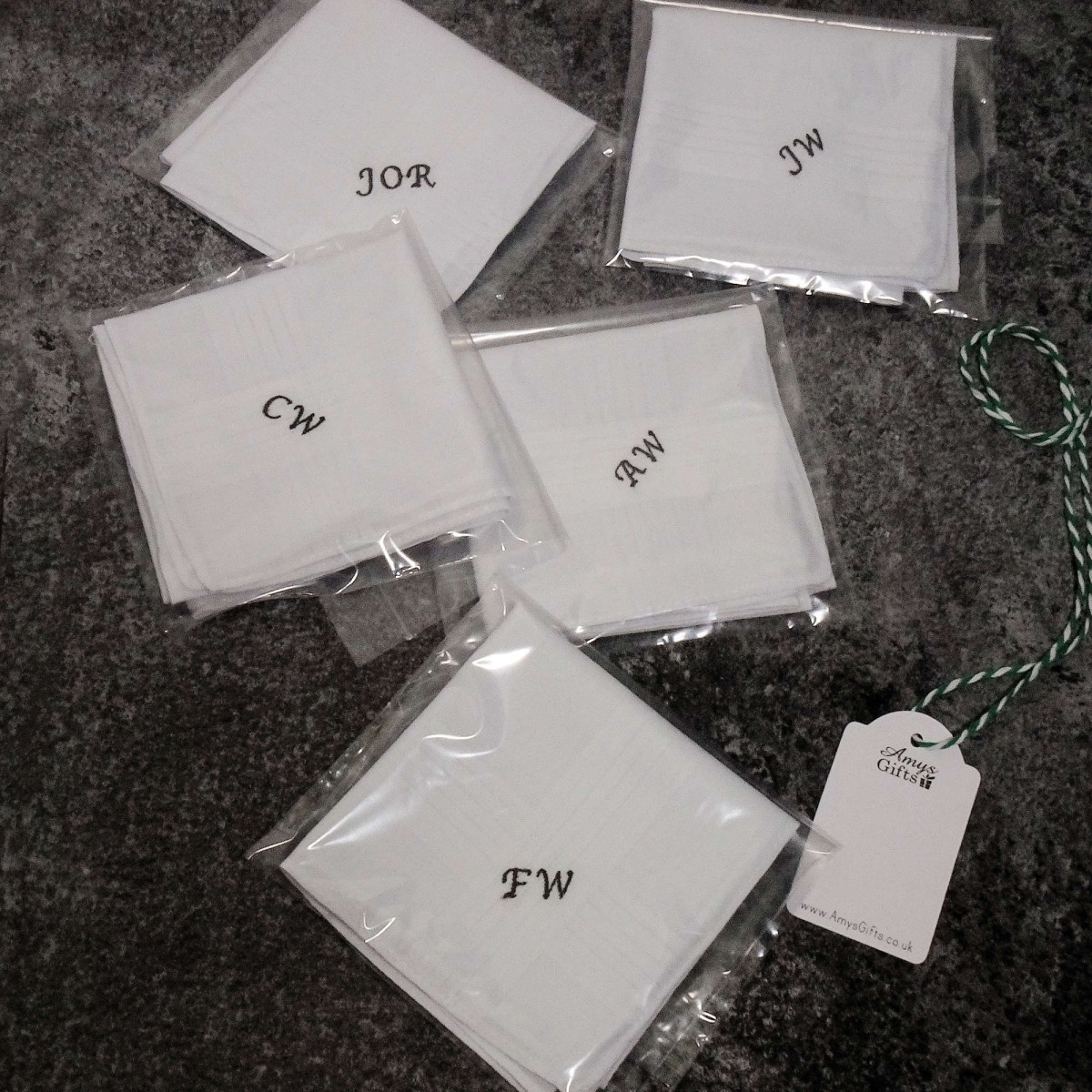 Mens Personalised Handkerchiefs 15 Individual Wedding Hankys