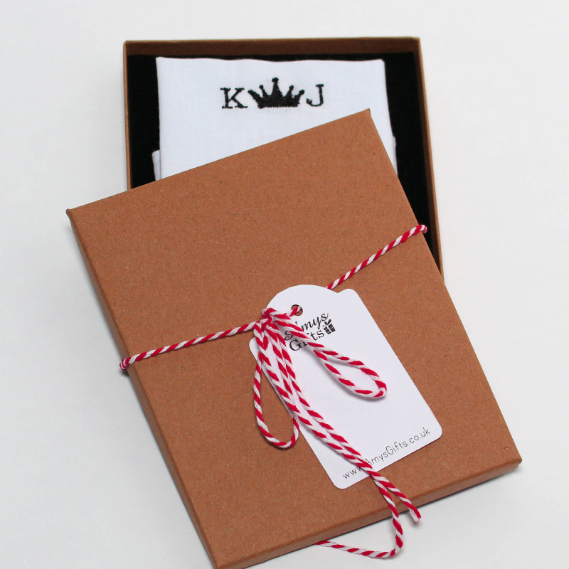 Personalised with your choice from our small motif selection. Motif is sewn in the thread colour you choose. Or if you want a special custom made small motif we are happy to quote. Please send a contact email with your request. Mens size 38cm all cotton handkerchief.
