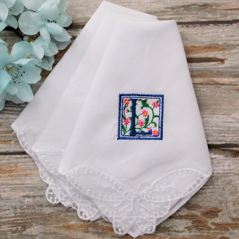 Monogrammed Ladies Handkerchiefs Floral Initial Butterfly Lace Hankies