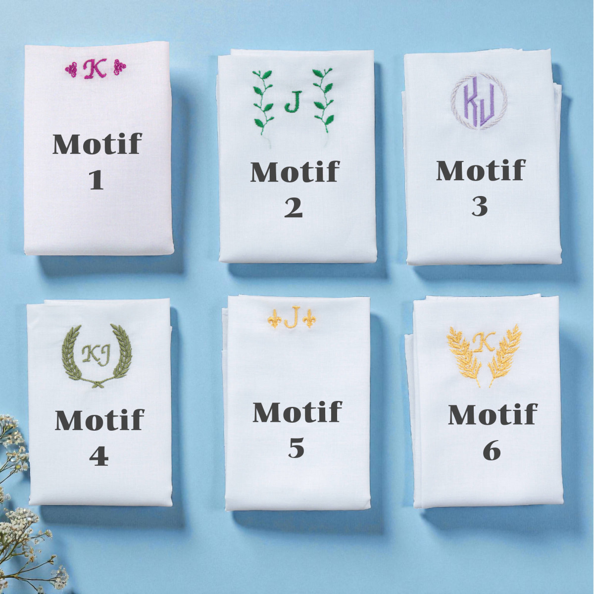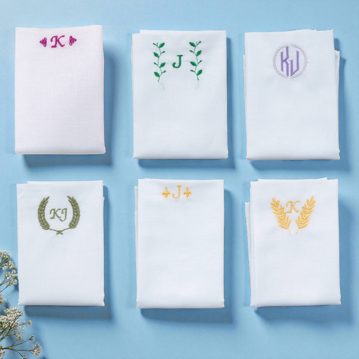 Monogrammed Pocket Squares Initials and Motif Cotton Hanky