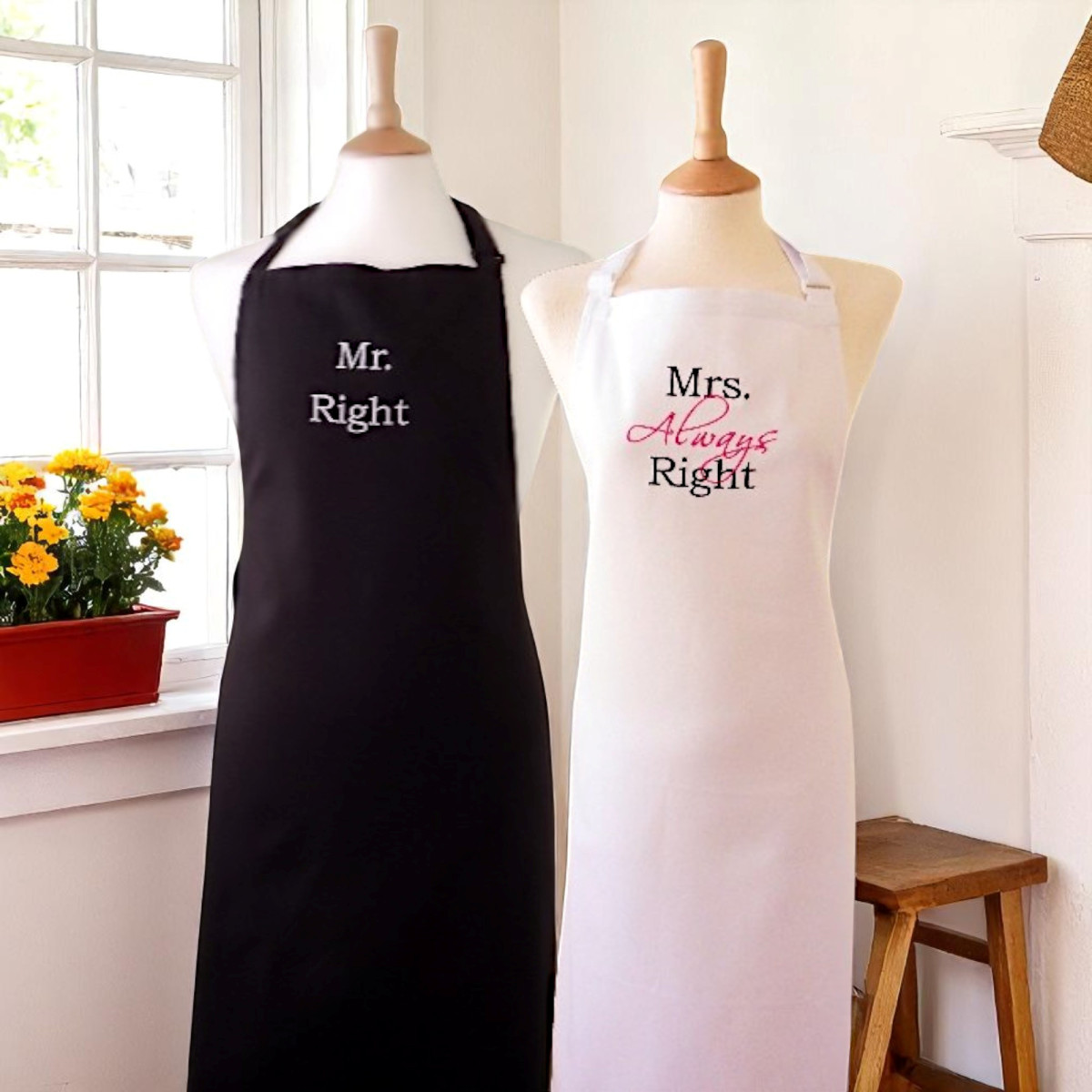 Mr and Mrs Right Aprons His and Hers Black White Apron Set
