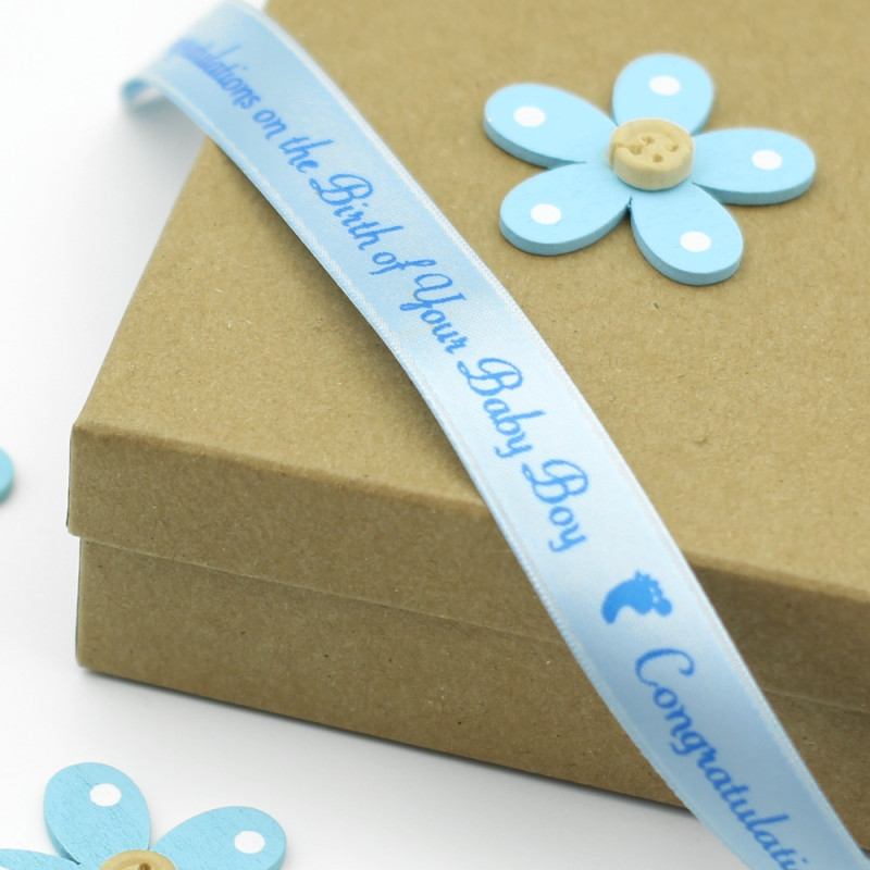 New Baby Boy Ribbon Personalised Gift Ribbon 15mm