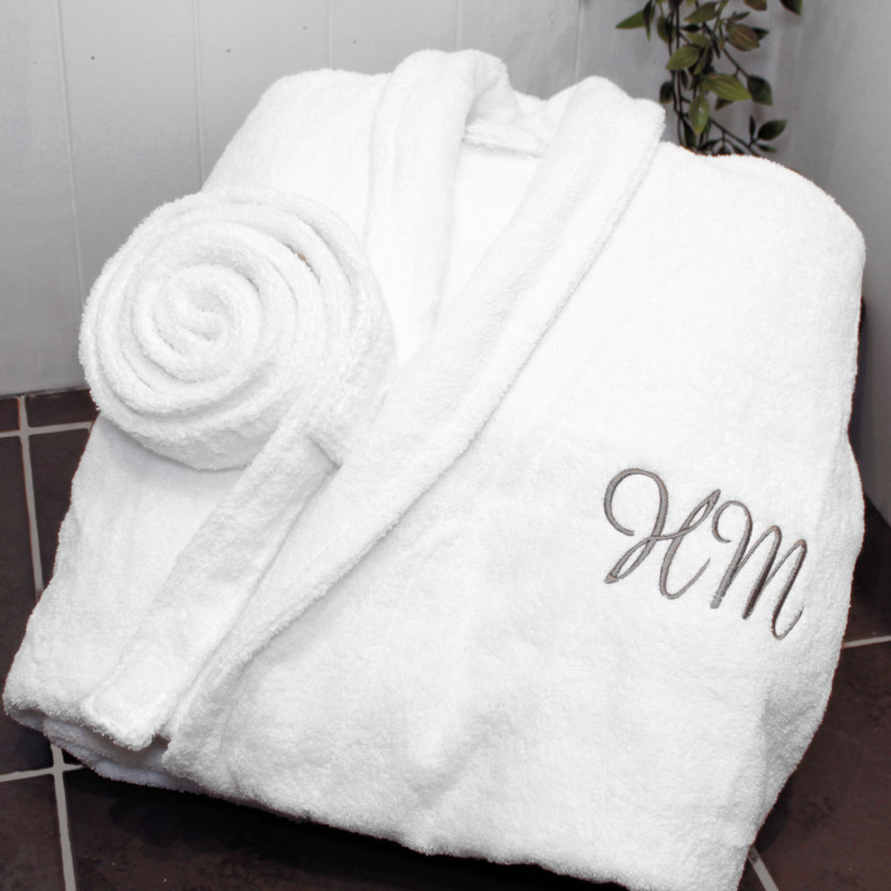 Monogrammed Bathrobe Mens Womens White Cotton Spa Robe