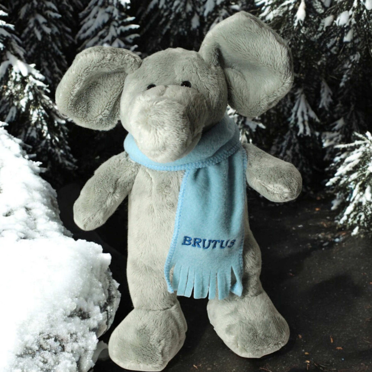 Cuddly cute Mumbles classic elephant with personalised satin ribbon bow tie. This plush baby elep..