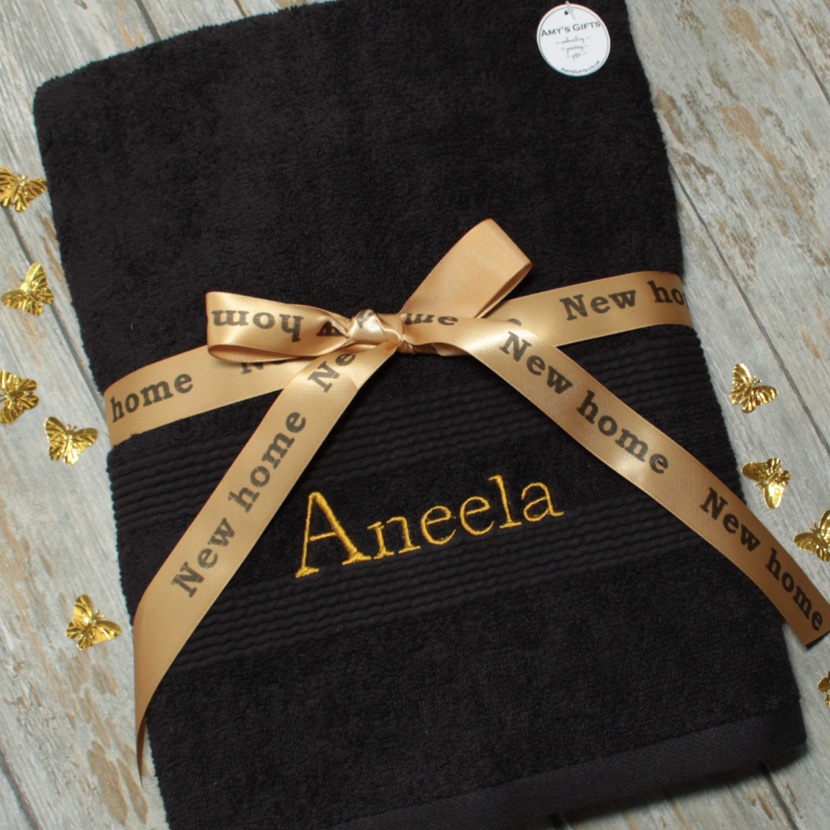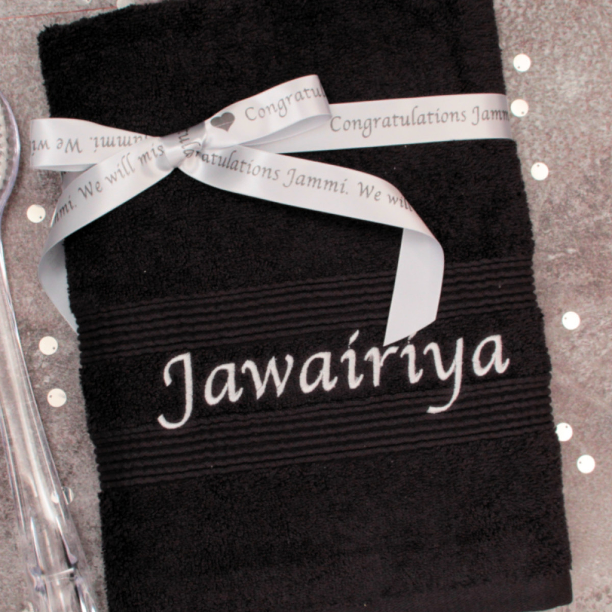 Personalised Black Towel with Gift Ribbon