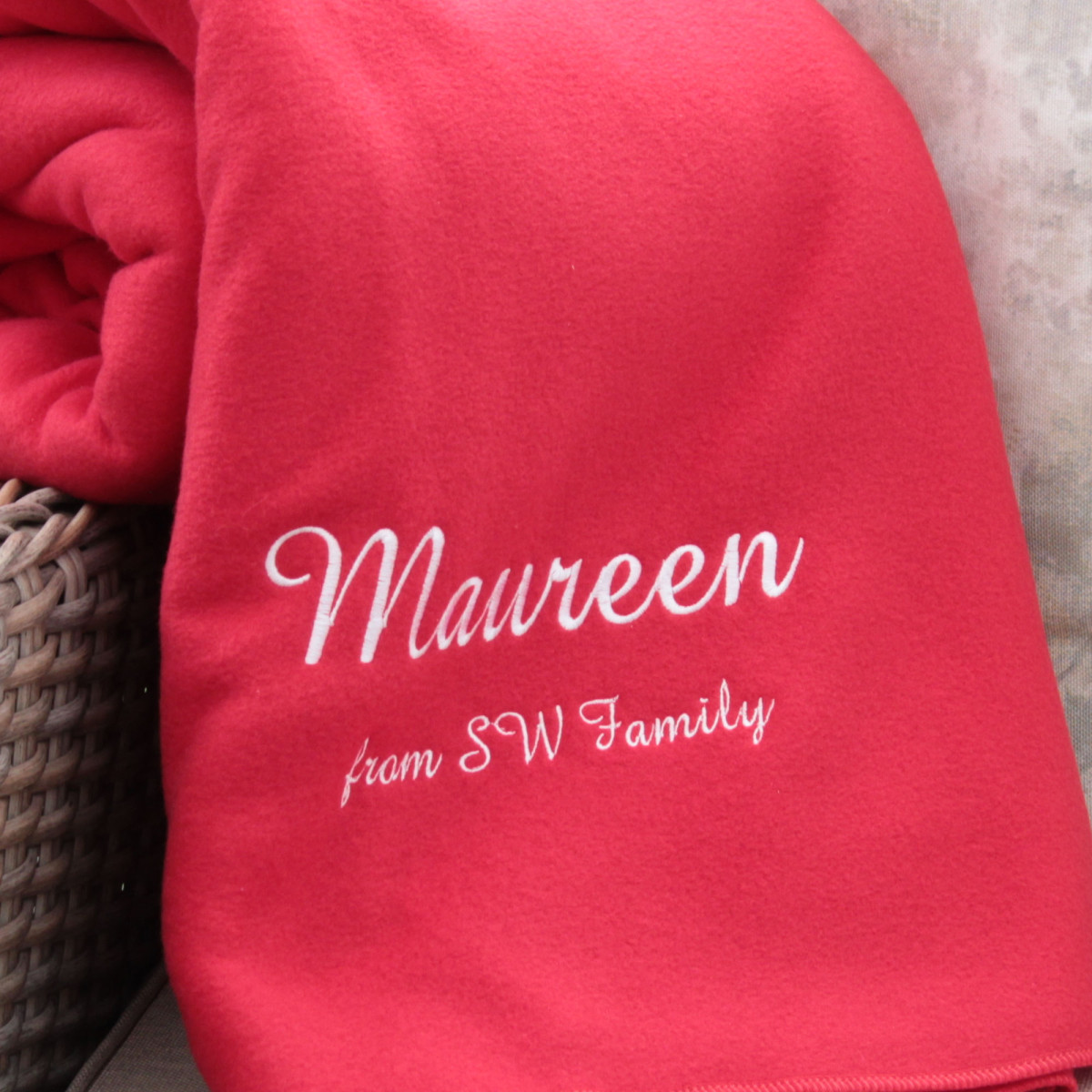 Personalised fleece throw blanket in your choice of colour and size embroidered with a personalised ..