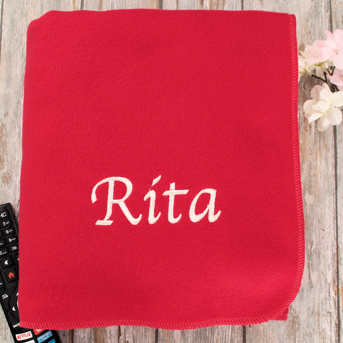 Personalised soft fleece blanket in a lovely red colour. Made to order in a blanket size of your choice - a single size 100x150 cm or a double size 200x150 cm. All sizes are measured approximate.