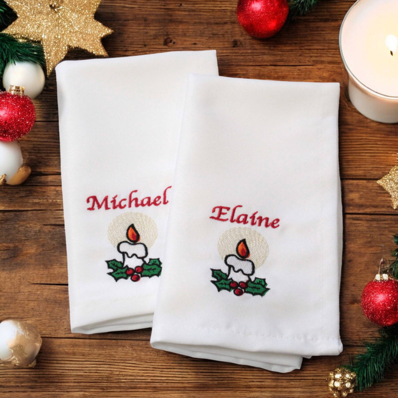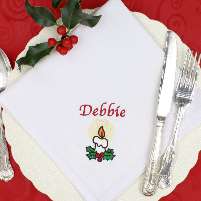 Personalised Christmas Napkin Candle Embroidered Napkin