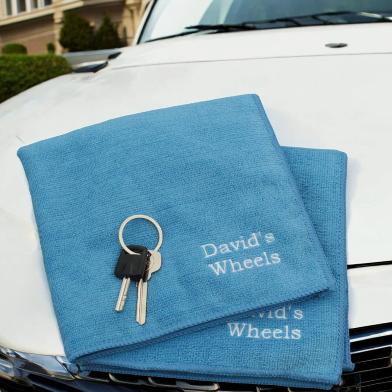 Personalised Cleaning Cloths Two Large Microfibre Car Cloth Blue