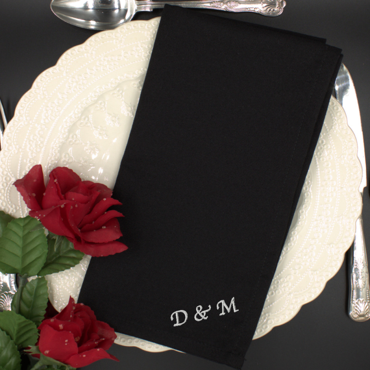 Personalised Dinner Napkins Large Luxury Black Cloth Napkin
