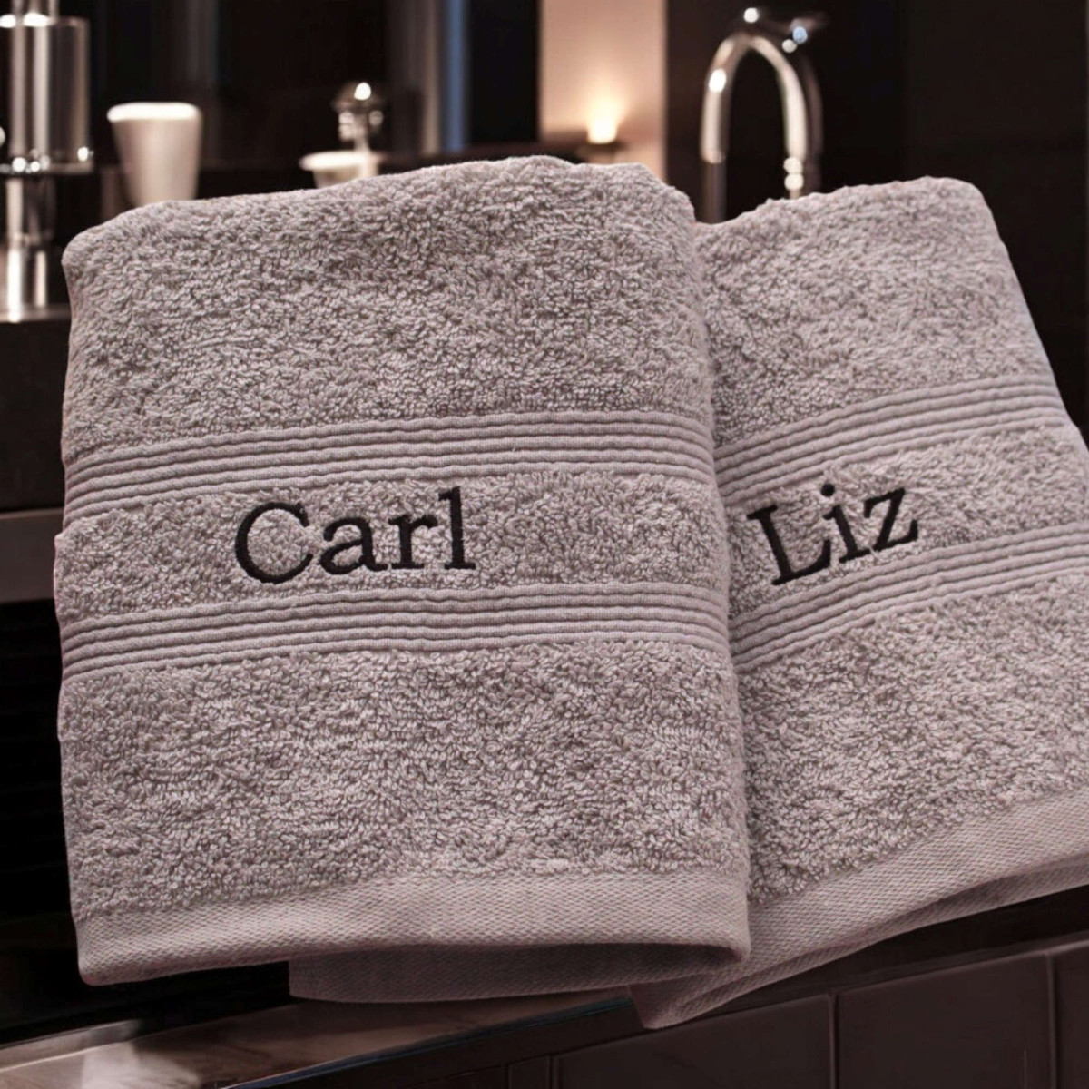 Personalised Grey Hand Towels Couples Gift Set