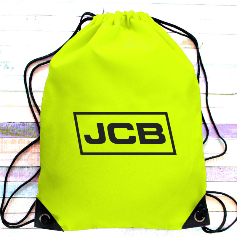Tags: personalised digger jcb embroidered named swim gym pe bag sack sport nylon