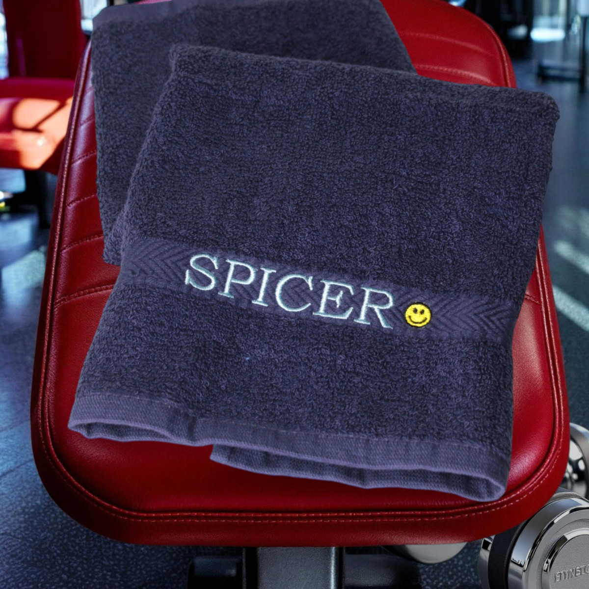 The little yellow happy smile face emoji is added to encourage you to strive on in your workout and keep positive about good health and an active ifestyle. This also makes this gym towel a great gift that stands out from the ordinary gym towels.