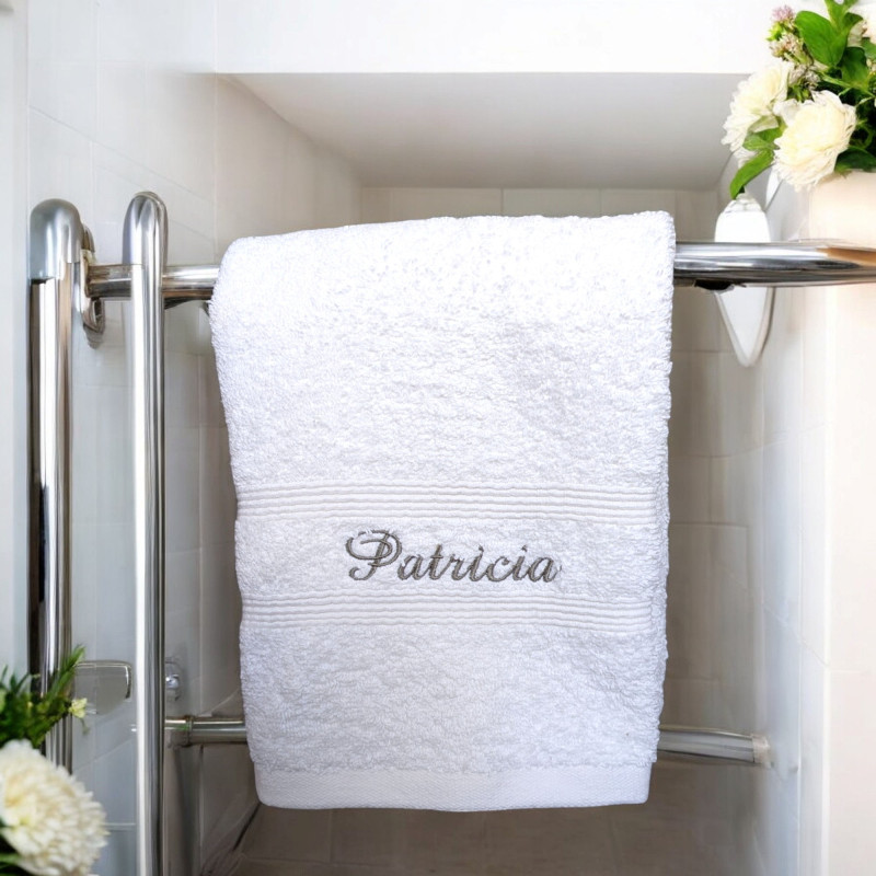 Personalised White Bath Towel Custom Embroidered Towel - Amy's Gifts