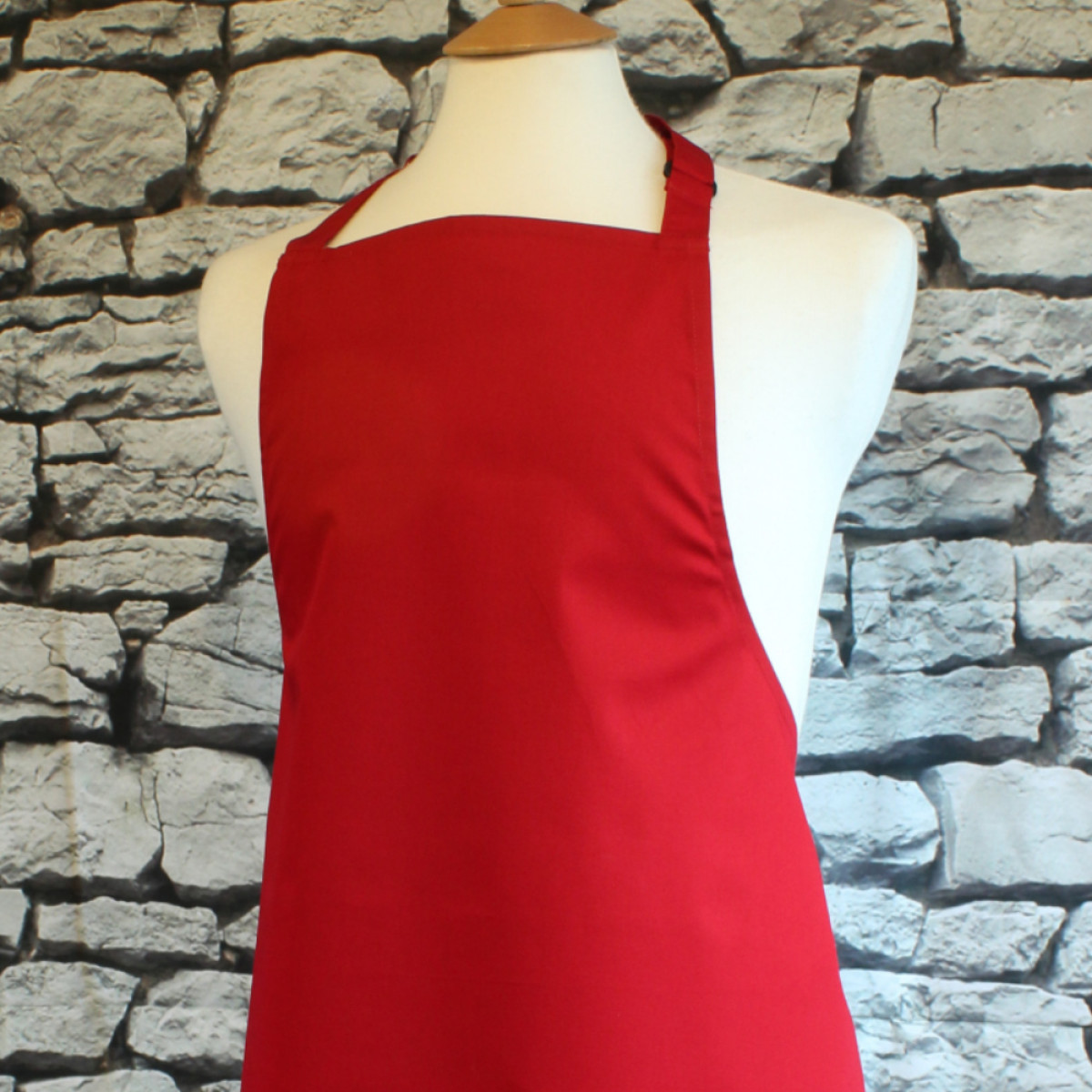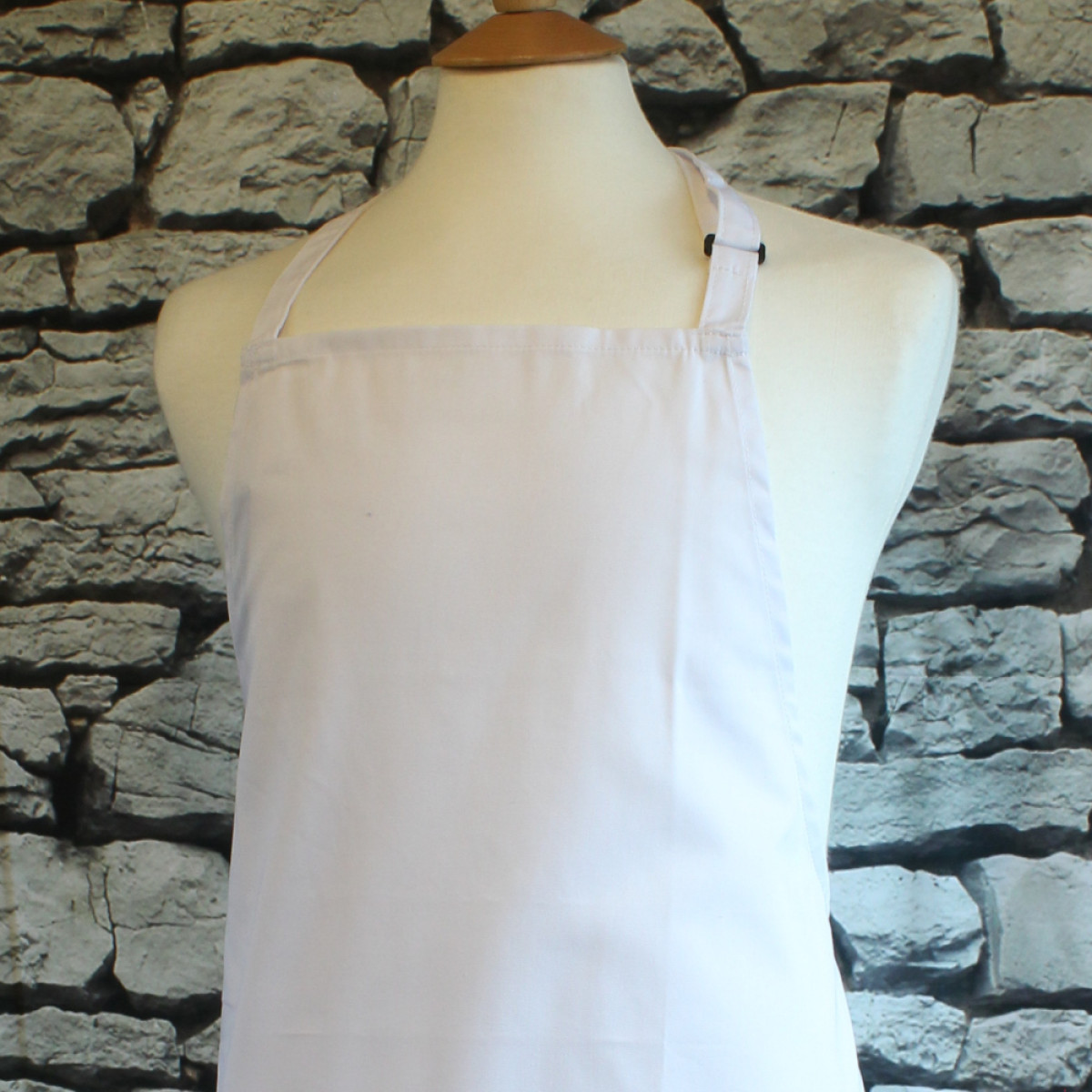 Stylish, durable and machine-washable aprons. 65% polyester and 35% cotton blend for durability, softness and easy care. Has adjustable pullover neck strap and long waist ties so you can adjust to fit most all adults. Adult size apron measures 72cm wide x 86cm long.