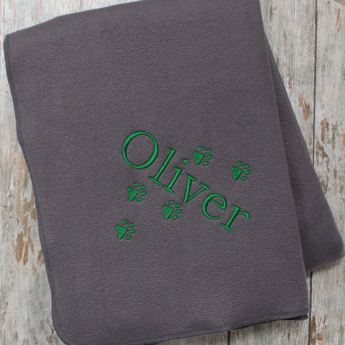 Personalised cosy pet blanket with embroidered pawprints and name of your choice that can be especia..