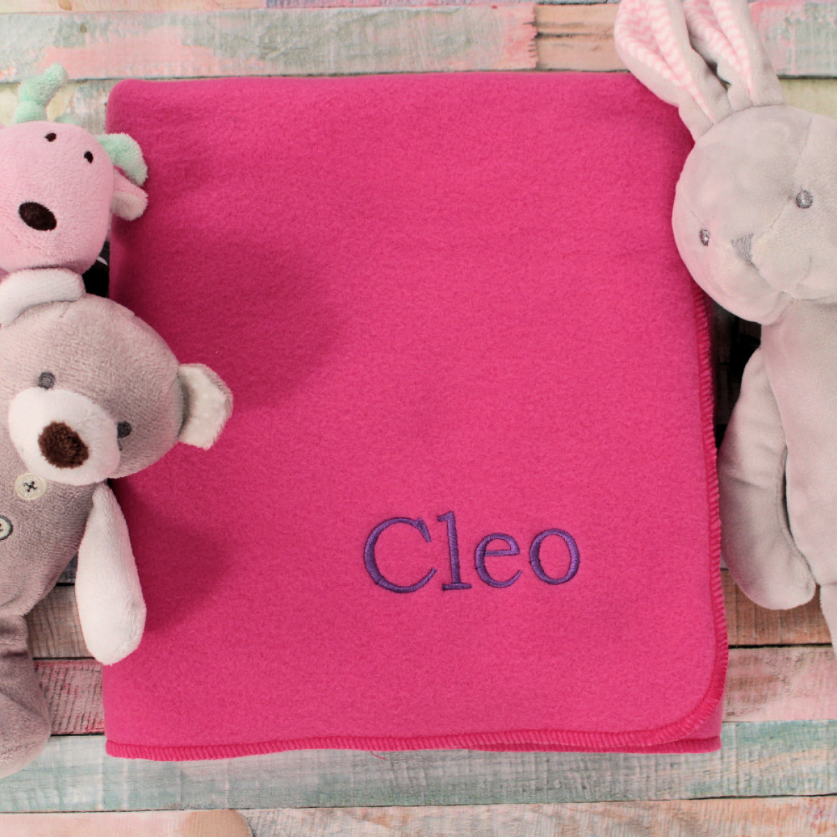 Personalised Pink Baby Blanket Embriodered Dark Pink Fleece