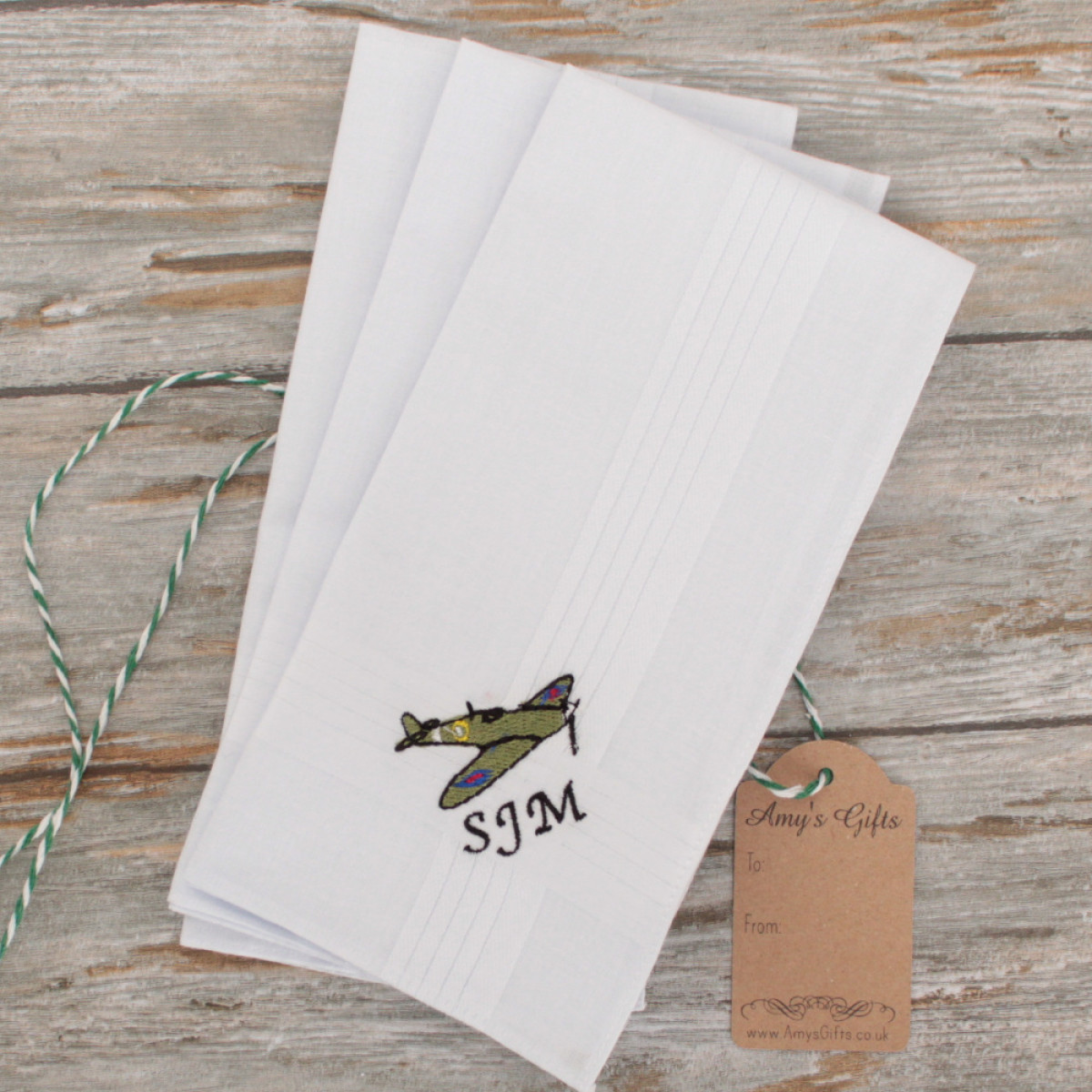 Spitfire Plane Handkerchiefs Personalised Set of 3 Hankies