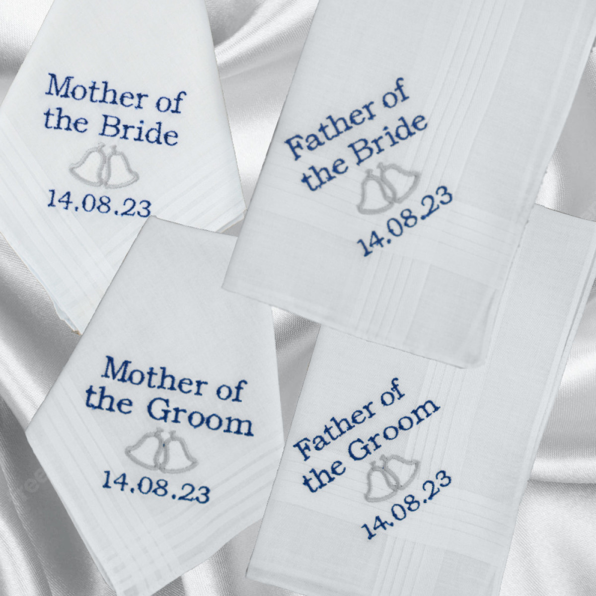 Wedding Bells Handkerchiefs Set Mother Father of Bride Groom Hankies