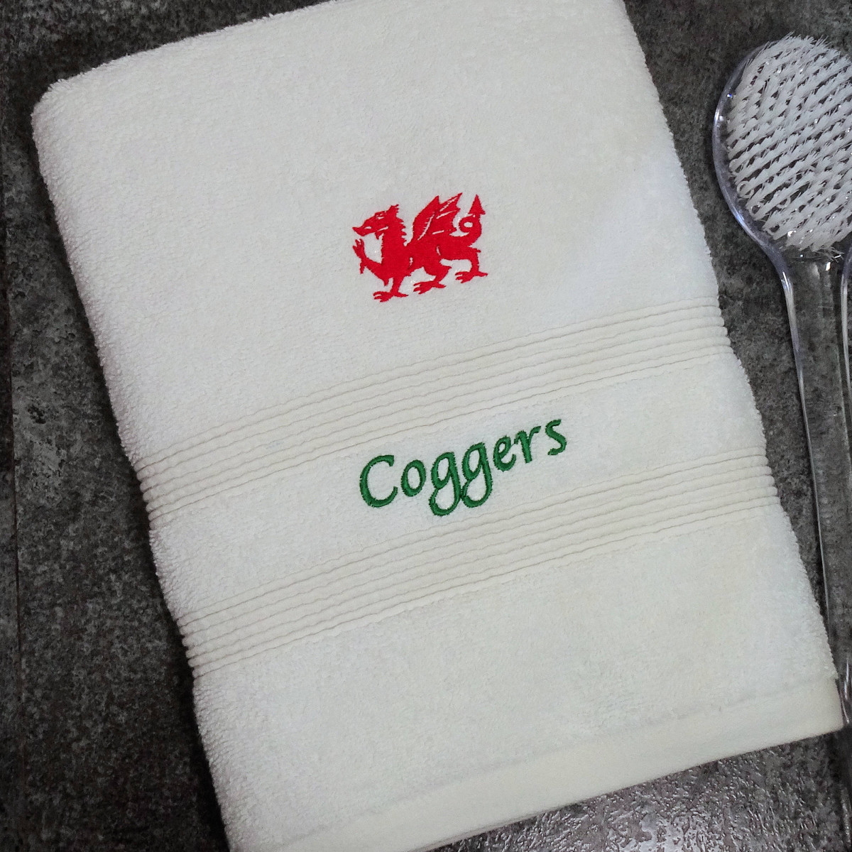 Quality bath towel gift with your own personal touch - you or the recipient will be proud to be patriotic in support of the Welsh national symbol and how good a your own personalised towel looks.