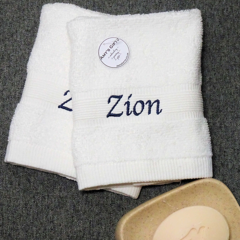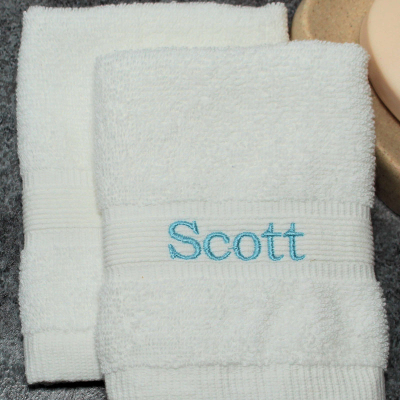 White Personalised Flannels Embroidered Face Cloths Pair